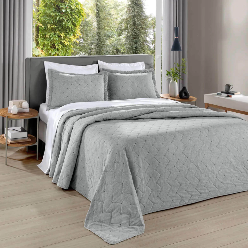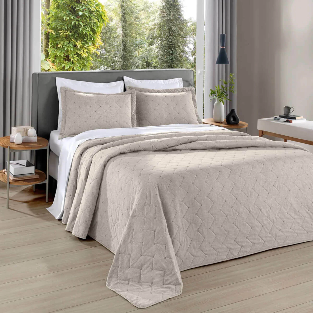 Renove o visual do seu quarto com elegância e aconchego usando a colcha matelassê mesclada da Buettner. Produzida em 100% poliéster com frente mesclada (120 g/m²), verso em microfibra (750 g/m²) e enchimento de 160 g/m², ela proporciona um toque macio, leveza e resistência, ideal para todas as estações. O acabamento bouti matelassê adiciona textura e charme sem pesar, combinando estilo e conforto com praticidade para o uso diário. Acompanha porta-travesseiro coordenado, que completa o look da cama de forma harmoniosa.