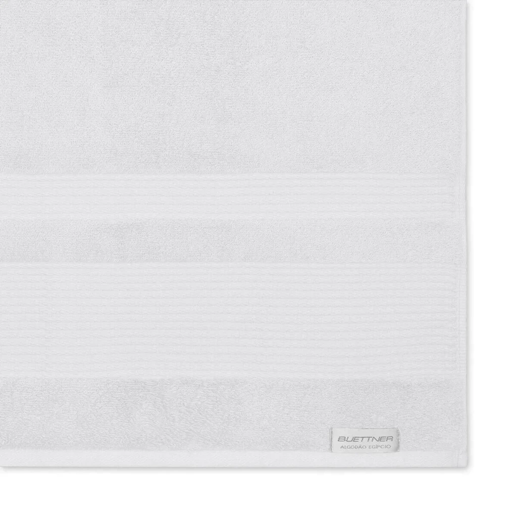 Jogo de Toalhas com 5 Peças em Algodão Egípcio de corpo liso felpudas e tingidas, sendo 2 Toalhas de Rosto e 2 Toalhas de Banho Gigante com barras trabalhadas da linha Nobre Buettner, e 1 Toalha para Pés (piso) modelo Domus. As toalhas de Rosto e Banho Gigante são tecidas em fio penteado de fibras longas e dupla torção de ótima qualidade, com barra Jacquard trabalhada em alto e baixo relevo, dando um ótimo toque tendo uma alta absorção. Seu toque macio encanta ao passar a toalha na pele, resistindo e absorvendo muito a água contida no corpo. A toalha possui um lindo visual, proporcionando uma ótima beleza ao estar exposta ao banheiro. A felpa mais encorpada e volumosa torna a toalha mais requintada e nobre. A Toalha para Pés (piso) modelo Domus possui um trabalhado mais tradicional, com um desenho geométrico no formato de retangulo.