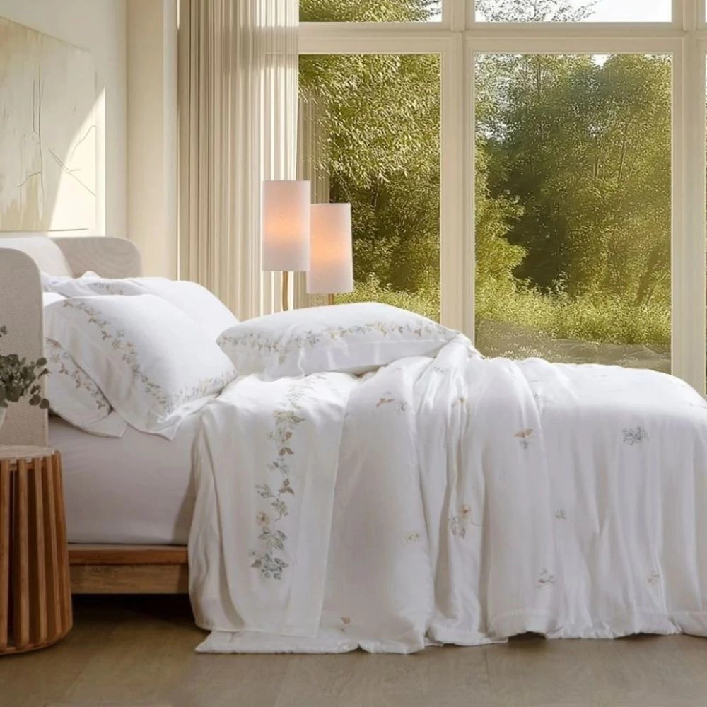 Desperte o charme e o conforto do seu quarto com este conjunto exclusivo da linha Bali. Produzido com fibra 100% natural de bambu, o conjunto entrega um toque de cetim suave e sedoso, respirabilidade excepcional e acabamento refinado — perfeito para quem busca elegância, conforto e bem-estar dia após dia. A matéria-prima vegetal ganha destaque pelas propriedades hipoalergênicas, antibacterianas e antiácaros, favorecendo noites de sono mais saudáveis, além de regular a temperatura (fresco no calor e aconchegante no frio).