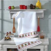 Pano de copa felpudo encorpado e de ótima absorção, com barra decorada em jacquard.